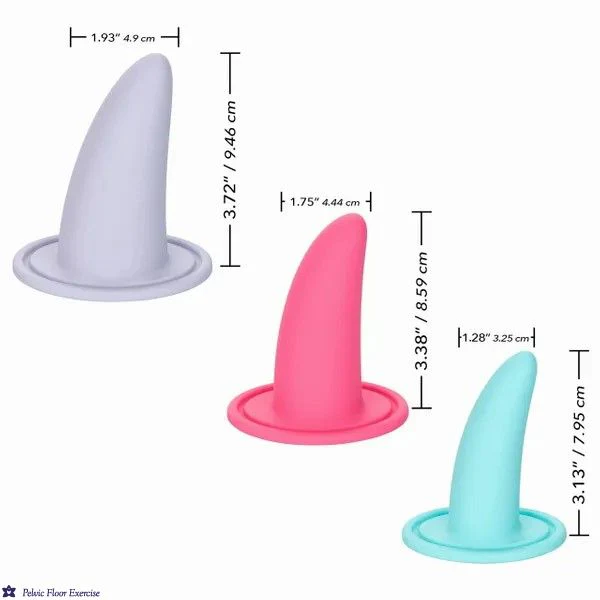 The graduated set has been created to revive vaginal muscle strength and reduce insertion discomfort with every use. Use the small dilator to begin and as you gentle exerciser and increase the elasticity of muscles, advance to the larger probes. With the unique wearable design, each probe is finished with a flexible flanged base for comfort and ease of mobility. The hypoallergenic premium silicone is body-safe, unscented and phthalate free to keep your most sensitive spots, happy and healthy.